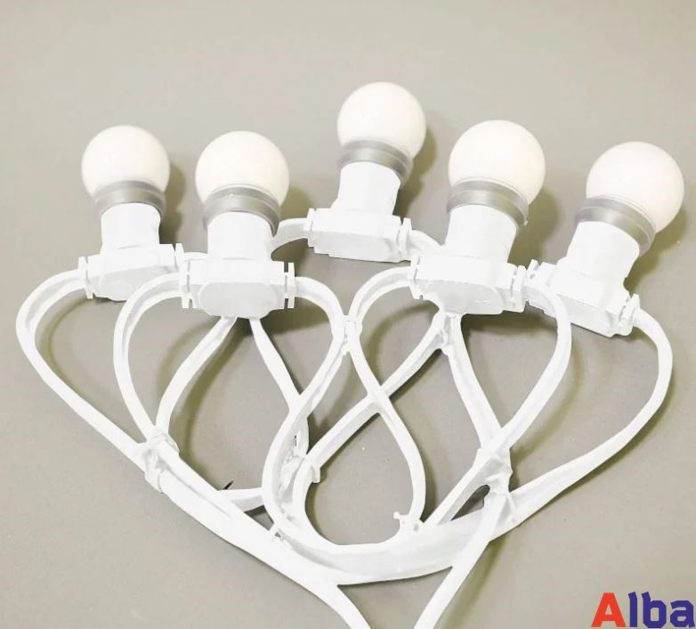 Надежный и очень красивый вид подсветки или украшения разных зданий и сооружений. Белт-лайт - это один из самых популярных типов подсветки. Такая гирлянда позволяет существенно подсветить поверхность и украсить площади. Благодаря большому количеству маломощных ламп (мощность каждой лампы всего 1Вт), которые не бьются, не ломаются белт-лайт не только хорошо подсвечивает, но и весьма безопасен в эксплуатации. Важная особенность - данный белтлайт имеет специальные ушки для удобства крепления.Лампы в комплекте не идут! Шнур белый 2-х проводной. 125 патронов. Расстояние между патронами 40 см. Напряжение сети - 220 В. Шнур подключения в комплекте. Усиленная влагозащита за счёт прорезиненного патрона.