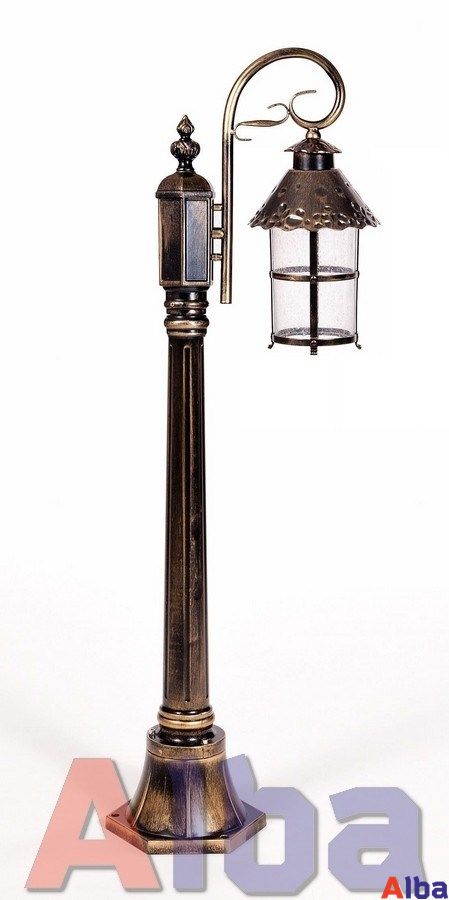 Садово-парковый светильник серии Caior l Мощность: 100Wt Цоколь: E 27 Степень защиты: IP 44 Плафон: стекло Корпус: металл Цвет: состареное золото
