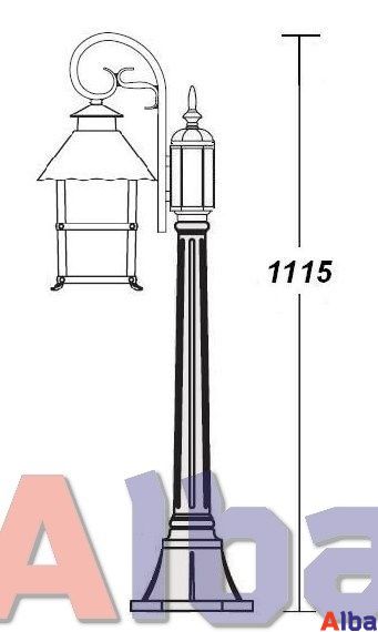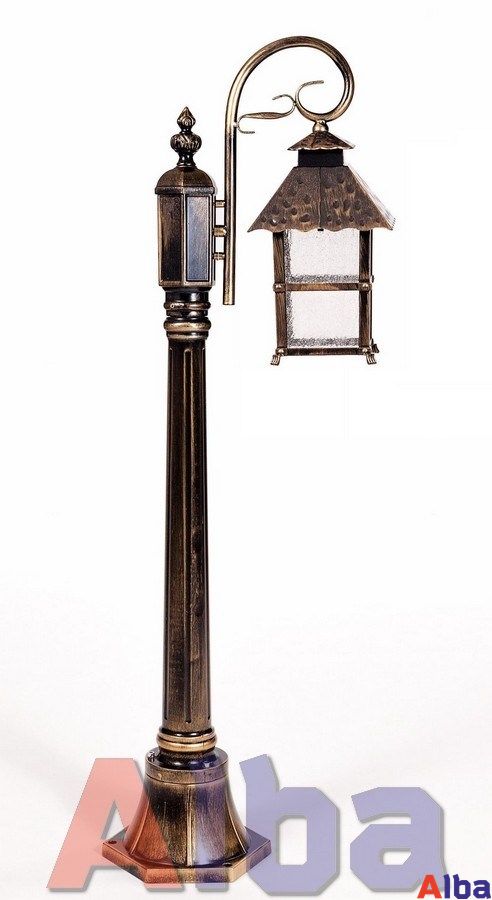Садово-парковый светильник серии Caior 2 Мощность: 100Wt Высота: 1115 см Цоколь: E 27 Степень защиты: IP 44 Плафон: стекло Корпус: металл Цвет: состареное золото