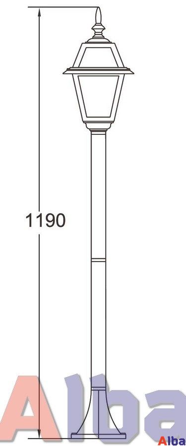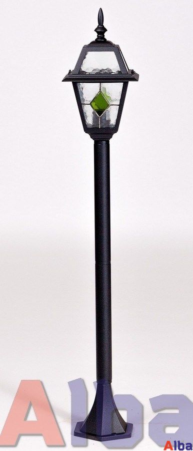Садово-парковый светильник серии Faro IgG Мощность: 100Wt Цоколь: E 27 Высота 119 см Степень защиты: IP 44 Плафон: стекло c зеленым ромбом Корпус: металл Цвет: черный (black)