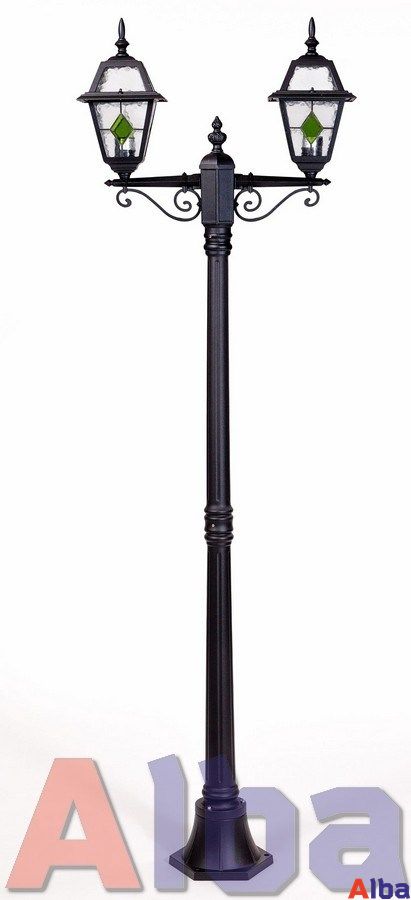 Садово-парковый светильник серии Faro IgG Мощность: 100Wt Цоколь: E 27 Высота 200 см Диаметр 61,9 см Степень защиты: IP 44 Плафон: стекло c зеленым ромбом Корпус: металл Цвет: черный (black)