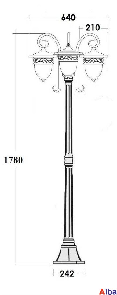 Садово-парковый светильник серии Krakow Место установки: на горизонтальную поверхность (на землю) Тип монтажа: интегрированный (монтаж на бетонную, деревянную, каменную поверхность) Наличие анкерной закладной: есть Мощность: 3*100 Wt Цоколь: E 27 Степень защиты: IP 44 Класс защиты: Class I Плафон: фактурное стекло