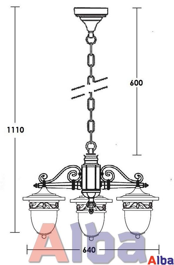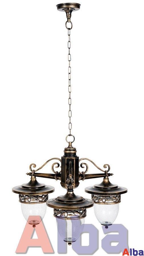 Садово-парковый светильник серии Krakow Тип установки: подвесной Тип монтажа: накладной Мощность: до 3*60 Wt Цоколь: E 27 Степень защиты: IP 44 Класс защиты: Class I Плафон: фактурное стекло Корпус: металл