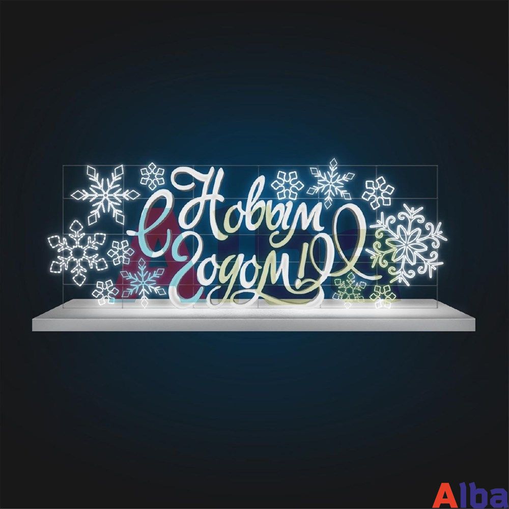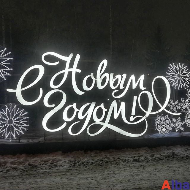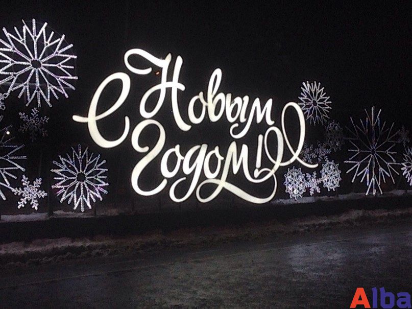 Световая надпись для оформления фасадов зданий "С Новым годом", длина 4,0 мНадпись выполнена из дюралайта 13 ммПанно для украшений фасадов зданий городских учреждений.Длина: 8,3 мВысота: 3,6 мЦвет: на выборНапряжение: 220 ВольтСветодинамика: фиксинг (постоянное свечение)Степень защиты от пыли и влаги: IP 65 Применение: уличное Материал каркаса: алюминий обшивка: композит, поликарбонат, пвх
