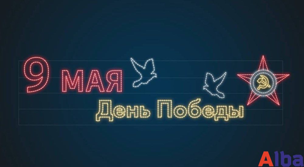 Перетяжка уличная световая День Победы голуби мира