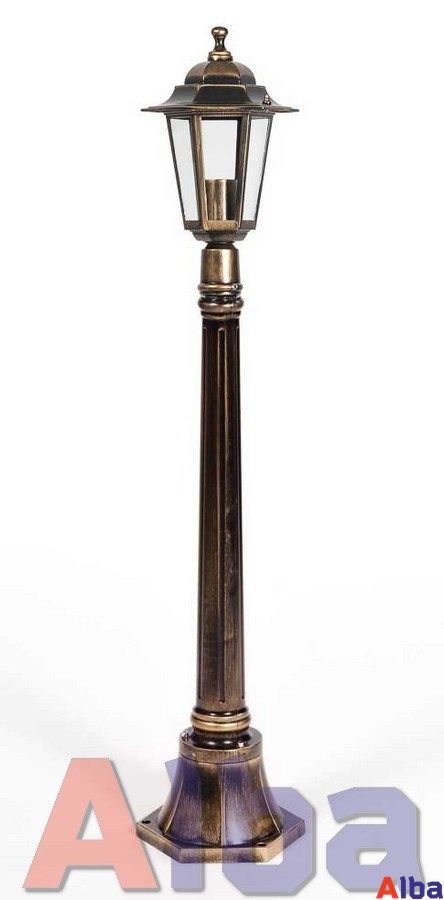 Садово-парковый светильник серии Petersburg S черный с золотом Мощность: 100Wt Цоколь: E 27 Степень защиты: IP 44 Плафон: стекло Корпус: металл Цвет: черный с золотом