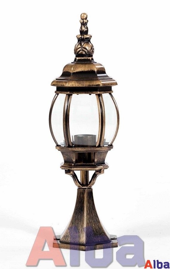 Классические светильники для аллей, парков и загородных домов отличаются высоким качеством комплектующих и красивым дизайном. Эти светильники не временное решение, а надежные и долговечные, они популярны у тех, кто хочет, установив их однажды снять вопрос освещения, и не рисковать из-за некачественных проводов или патронов под лампу. Наименование: Садово парковый светильник серии America S Мощность: до 100 Wt Цоколь: E 27 Высота 54,7 см Диаметр 16,2 см Степень защиты: IP 44 Плафон: стекло Корпус: металл Цвет: черный с золотом