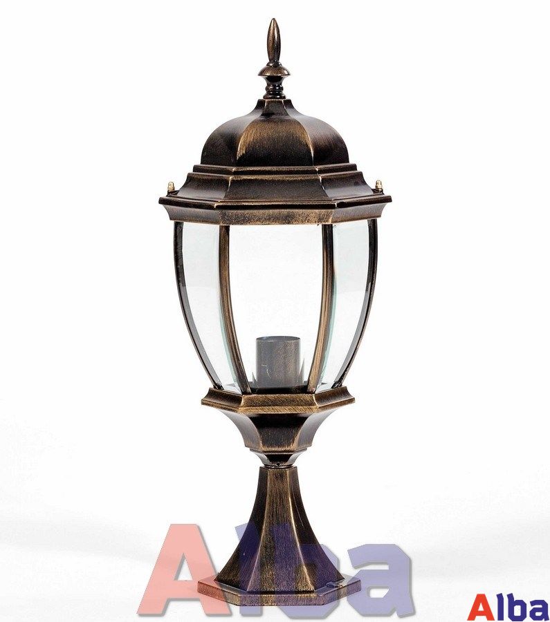Классические светильники для аллей, парков и загородных домов отличаются высоким качеством комплектующих и красивым дизайном. Эти светильники не временное решение, а надежные и долговечные, они популярны у тех, кто хочет, установив их однажды снять вопрос освещения, и не рисковать из-за некачественных проводов или патронов под лампу. Наименование: Садово парковый светильник серии America L Мощность: до 100 Wt Цоколь: E 27 Высота 60 см Диаметр 20,7 см Степень защиты: IP 44 Плафон: стекло Корпус: металл Цвет: черный с золотом