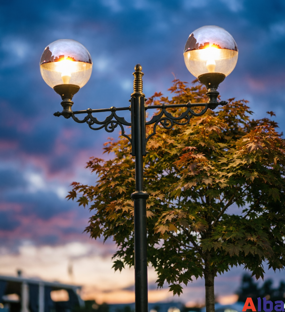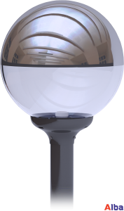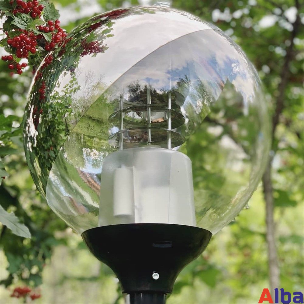 Светильник шар изготовлен из прочного светотехнического пластика (ПММА). Не желтеет и не темнеет со временем. Кроме того, плафон светильника прочный и не боится ударов веток или мощных порывов ветра. Также влагостойкость этого паркового светильника соответствует IP54 (пылезащищенное исполнение и имеет защиту от брызг, падающих под любым углом, сплошного обрызгивания).