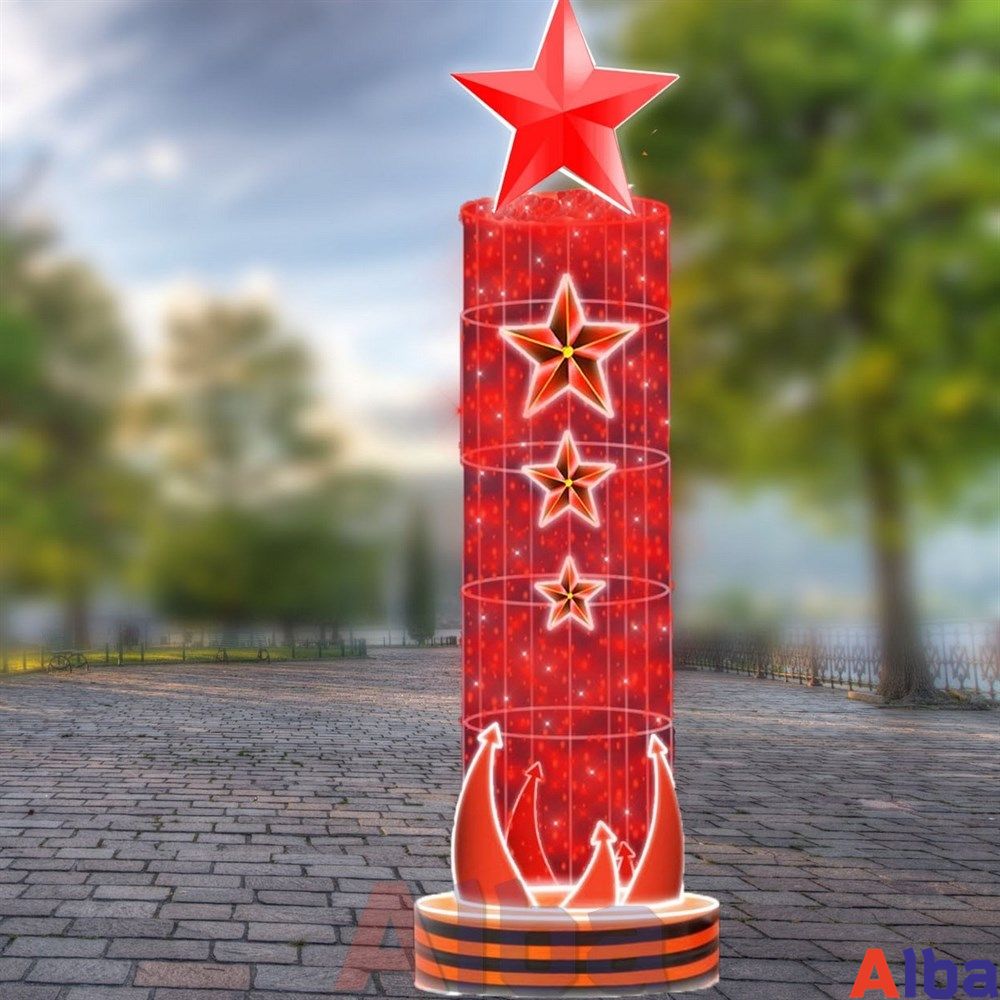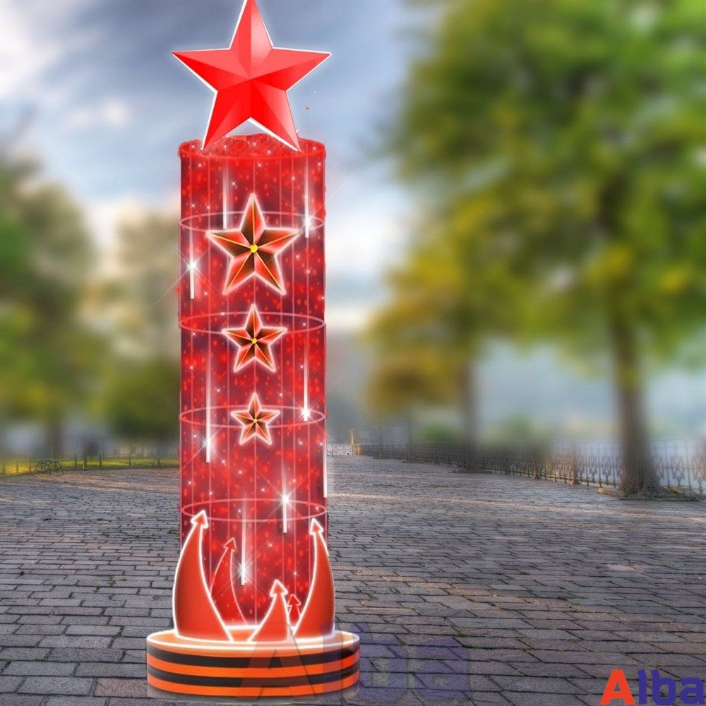 Стелла светодиодная Звезды на тумбе. Подходит для украшения городских улиц, площадей, аллей и скверов к 9 мая.