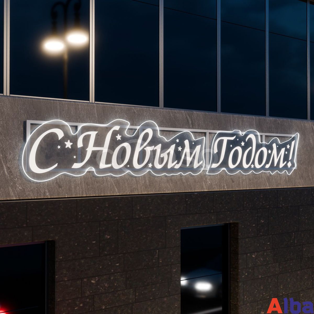 Светодиодные вывески являются ярким элементом декора фасадов торговых центров, витрин, офисных зданий и жилых домов, поздравляя жителей города с Новым годом и Рождеством. Конструкция изготовлена из прочного алюминиевого каркаса и оснащена надежной профессиональной светотехникой с защитой IP 65, что гарантирует ее долговечность в любых погодных условиях. Иллюминация привлекает внимание прохожих и создает атмосферу праздника.