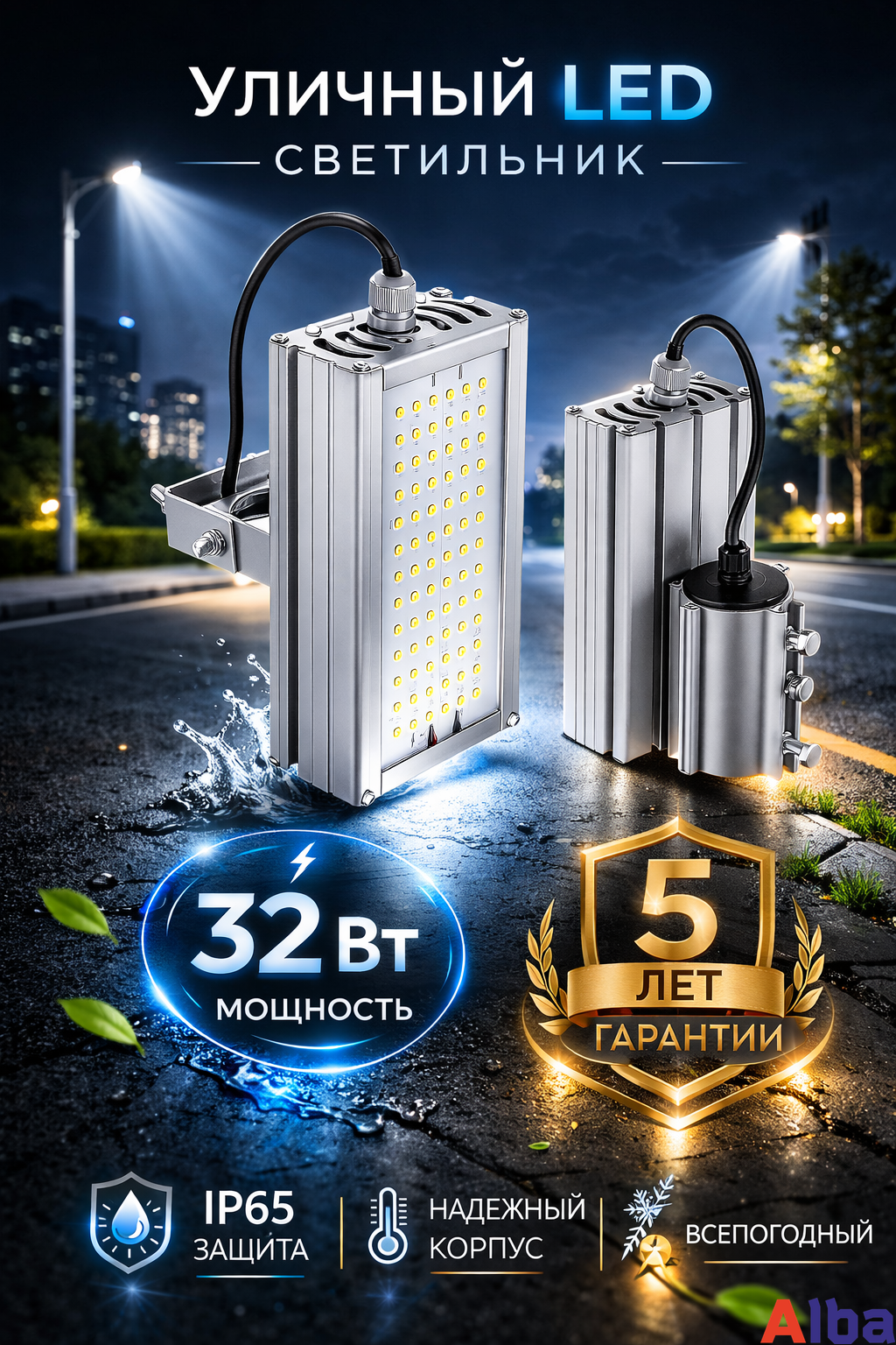Мощность, Вт: 32 Световой поток, лм: 4 480 5 120 Класс защиты, IP: 67 Кривая силы света (КСС): Д (косинусная) Угол рассеивания 120° Рабочая температура, °C: -60°...+50° С Рабочее напряжение, В: 176...264 (AС) сos φ: 0.95 Светодиоды SAMSUNG LM281 SAMSUNG LM281B+ Pro Цветовая температура, K: 4000К 5000К / 4000К / 3000К/ Энергоэффективность, лм/Вт: 140 165 Материал: Экструдированный алюминиевый профиль Анодированный алюминий Рассеиватель: Защитное минеральное стекло Срок службы светильник: 12 лет, 100 000 часов. Гарантия: 3 года 5 лет Размеры: 224х100х98 мм -