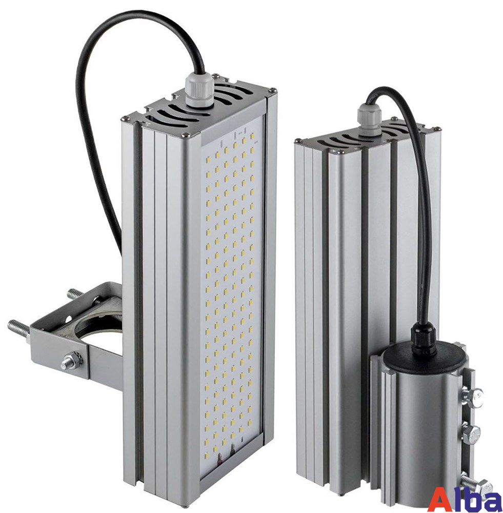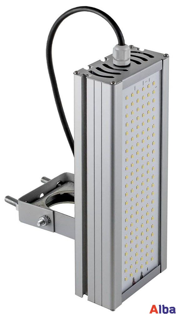 - с помощью скобы осуществляется консольный монтаж на трубы до 50 мм. и регулируется угол наклона светильника в горизонтальной или вертикальной плоскости.