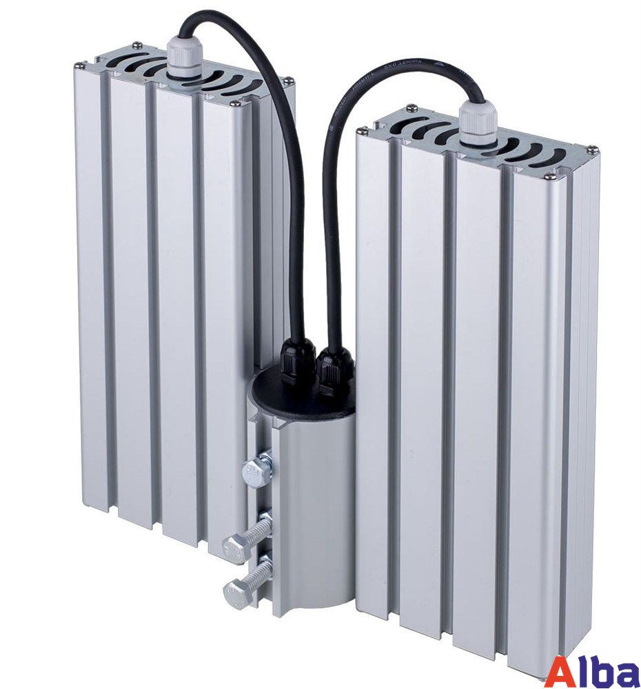 - с помощью скобы осуществляется консольный монтаж на трубы до 50 мм. и регулируется угол наклона светильника в горизонтальной или вертикальной плоскости.
