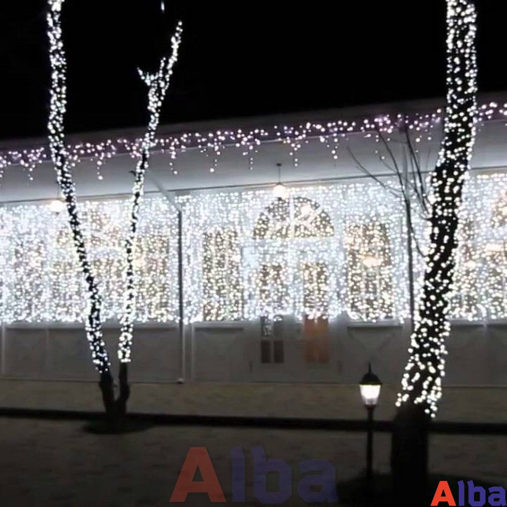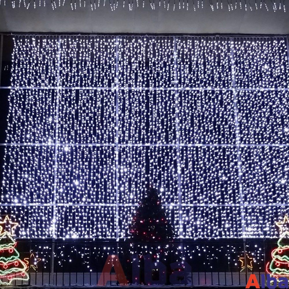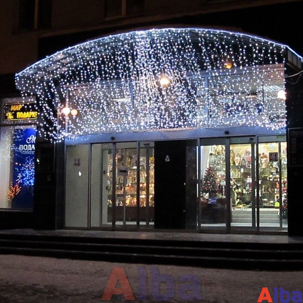 Занавес светодиодный используется для украшения фасадов зданий, входных групп арок, перил мостов, беседок и т.д.